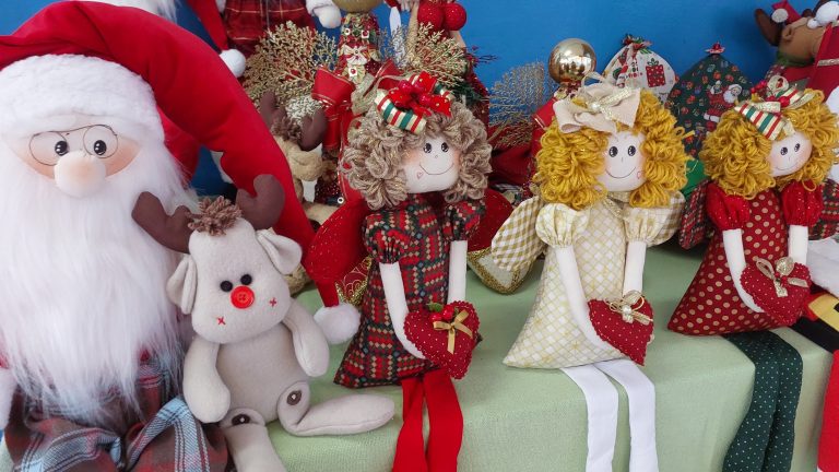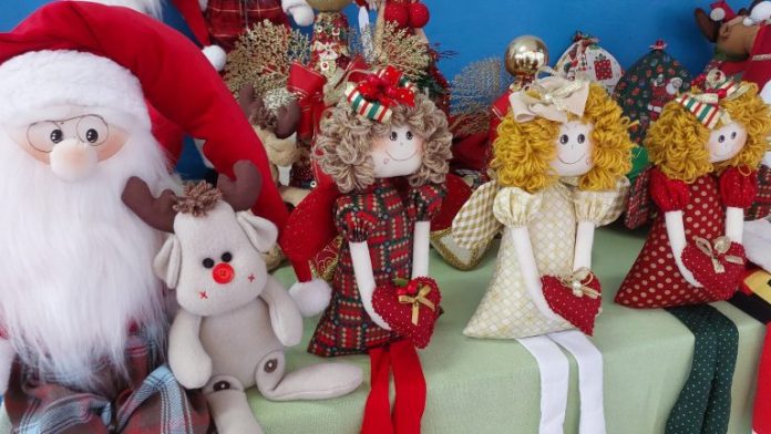 As confecções giram em torno de peças decorativas e pesos de porta com o tema natalino. Durante todo o ano o FAC oferece oficinas voltadas para a geração de renda.
