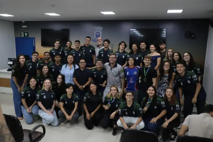 O presidente da Câmara Municipal de Campo Grande, vereador Epaminondas Vicente Neto, o Papy, e o vereador Professor Juari (PSDB) homenagearam nesta quarta-feira (29), com uma Moção de Congratulação os 34 atletas e os oficiais que participaram dos Jogos Universitários Brasileiros (JUBS 2026), realizados na cidade de São Paulo (SP), em abril. A cerimônia faz parte de um dos maiores eventos do esporte universitário do País, reunindo estudantes-atletas de diversas instituições e promovendo a integração, o respeito e a excelência esportiva.