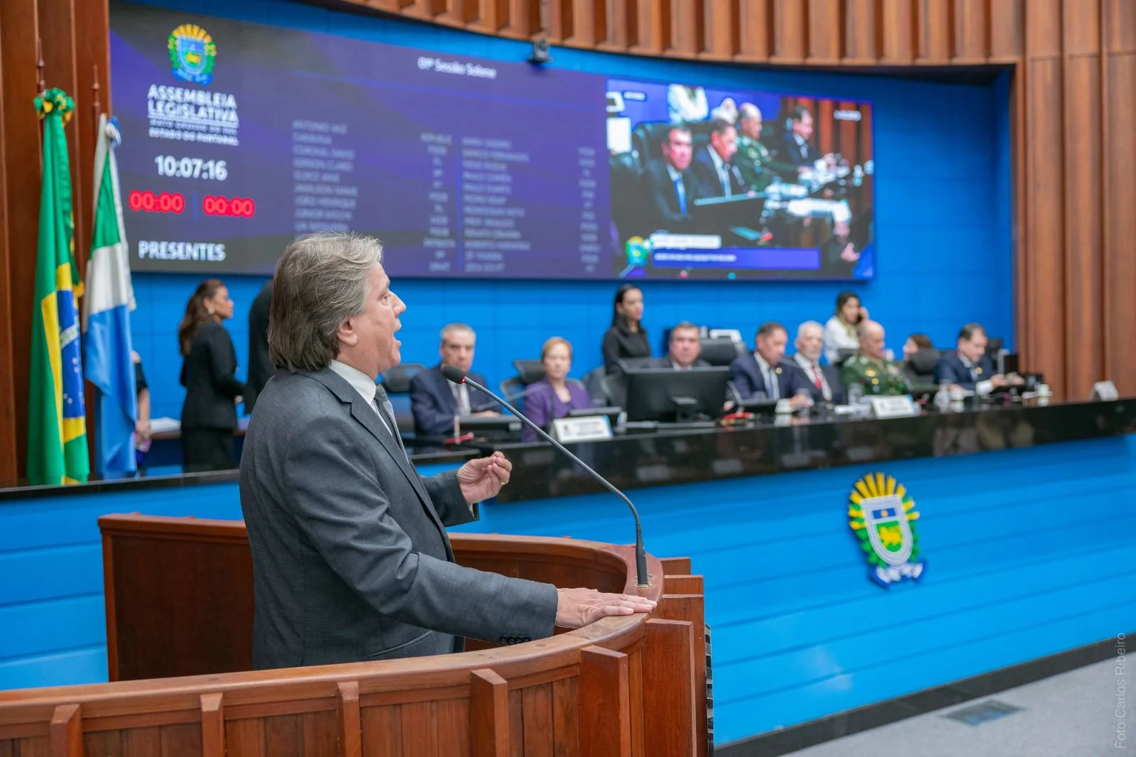 O deputado estadual Caravina utilizou a tribuna da Assembleia Legislativa de Mato Grosso do Sul durante a sessão solene de abertura dos trabalhos legislativos de 2026 para reforçar a necessidade de fortalecimento de investimentos nas áreas de segurança pública, saúde e infraestrutura.