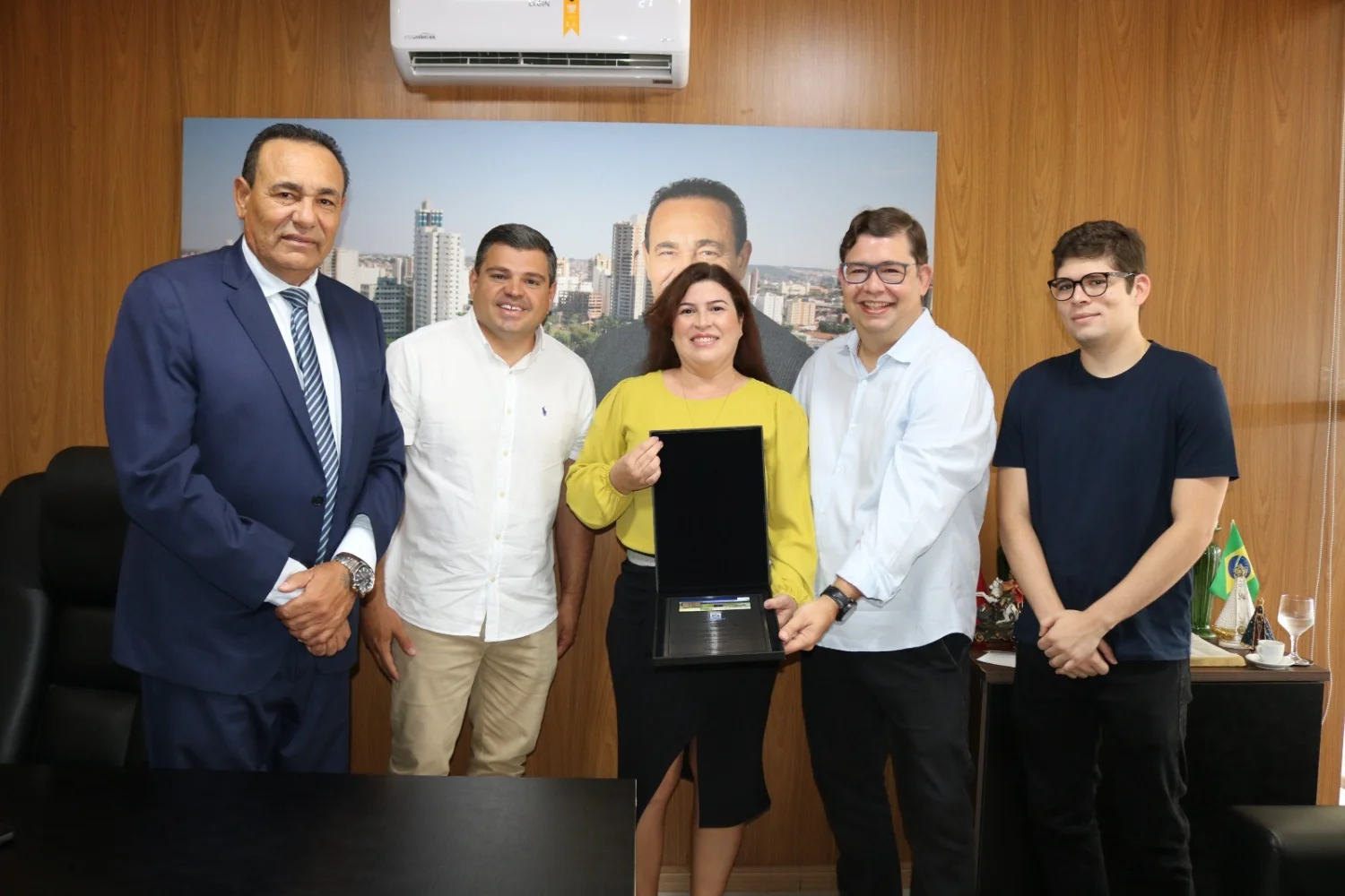 Em uma cerimônia marcada por emoção e reconhecimento, o vereador Carlos Augusto Borges, o Carlão (PSB), 1º Secretário da Mesa Diretora da Câmara Municipal de Campo Grande, realizou a entrega da placa de “Visitante Ilustre” à Sra. Valentina Gonçalves Costa Monteiro. O evento contou com a presença do vereador Silvio Pitu e do ex-vereador William Maksoud, além de familiares da homenageada, como seu esposo Marcelo Vinhaes Monteiro, atual diretor presidente da Energisa Mato Grosso e ex-presidente da Energisa MS e seu filho, Victor.