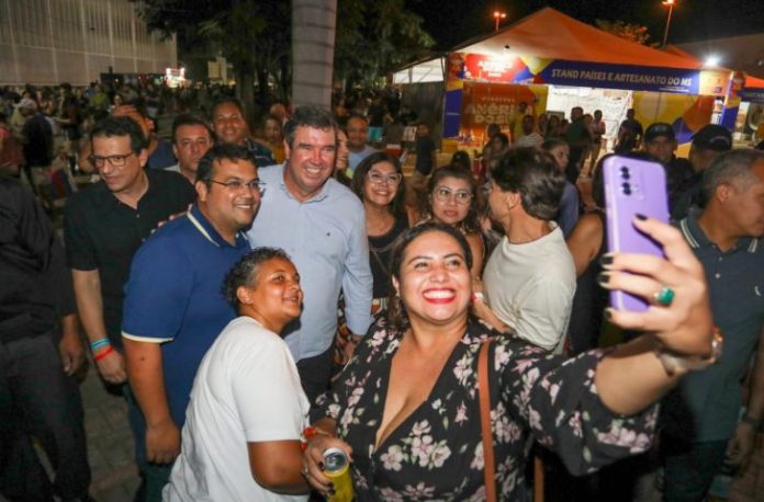 O governador Eduardo Riedel, e a primeira-dama Mônica Riedel, participaram do FAS, percorreram o circuito assistiram a apresentação da banda do Exército no Forte Junqueira (com músicas regionais) e do grupo Catedral Erudita – de música clássica –, além do show principal deste sábado (17), da cantora Alcione.