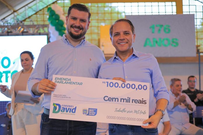 Ao entregar o cheque simbólico, Coronel David fez questão de destacar seu compromisso com Nioaque e o carinho especial que nutre pela população da cidade.