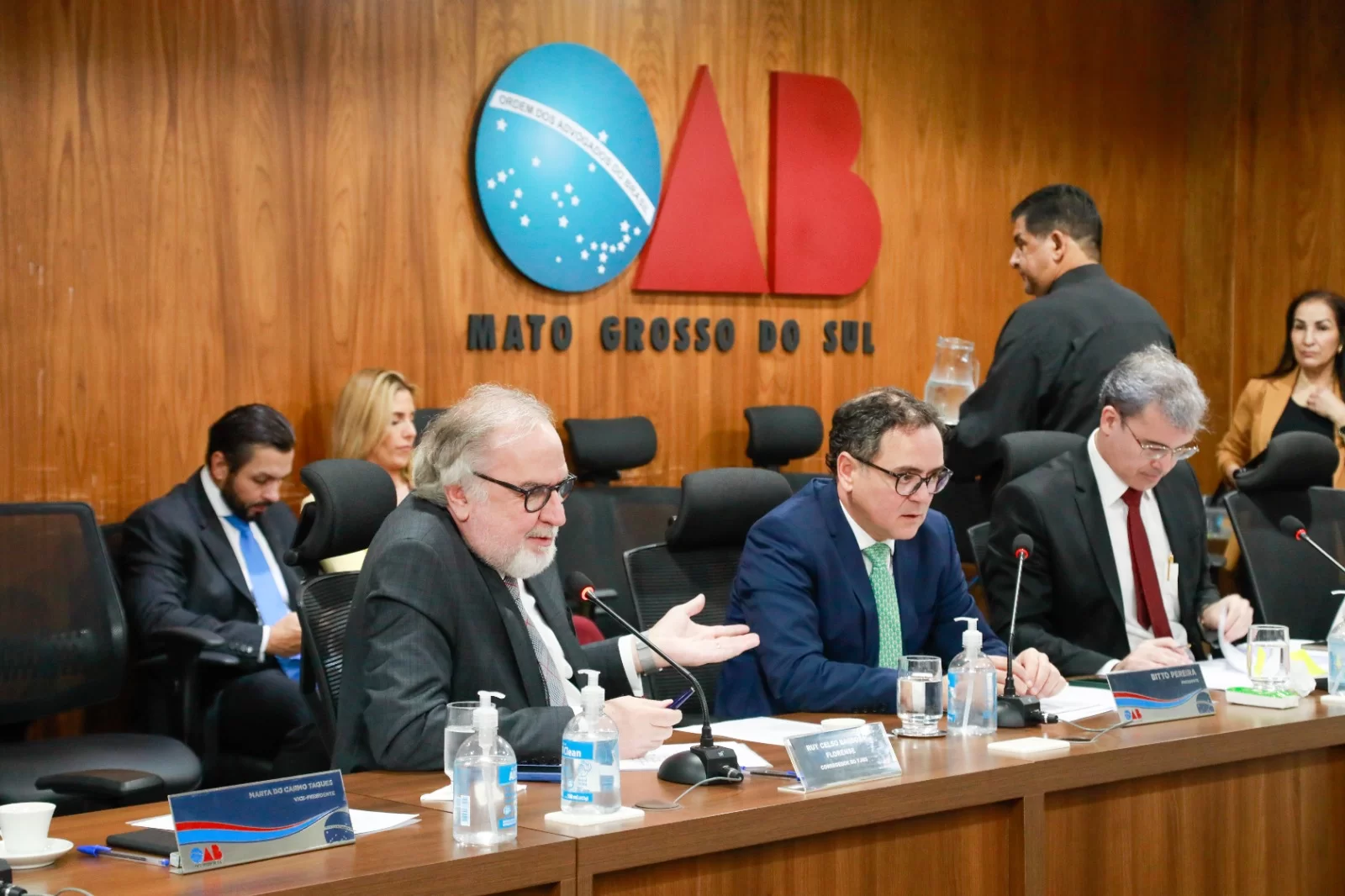A mesa de trabalho contou com a presença do presidente da OAB/MS, Bitto Pereira; da vice-presidente, Marta do Carmo Taques; do secretário-geral e corregedor-geral, Luiz Renê Gonçalves do Amaral; da secretária-geral adjunta, Letícia Arrais Miranda Guimarães; do diretor-tesoureiro, Fábio Nogueira Costa; do diretor-geral da ESA/MS, João Paulo Sales Delmondes; do presidente da CAAMS, Gabriel Affonso de Barros Marinho; dos conselheiros federais Daniel Castro e Mansour Elias Karmouche; além do coordenador das Comissões e conselheiro estadual, Felipe Simões.
