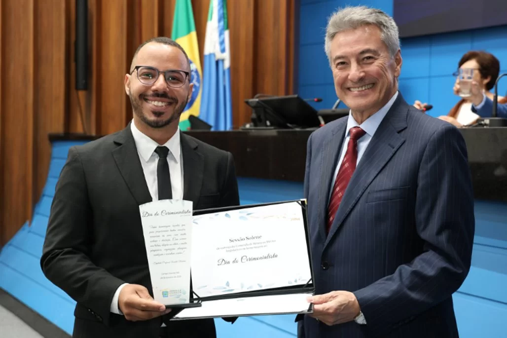 Para exaltar os profissionais responsáveis pela organização e coordenação de eventos que atuam em Mato Grosso do Sul, a Assembleia Legislativa realizou na noite de terça-feira, 28, a Sessão Solene em comemoração ao Dia do Cerimonialista. Na cerimônia, o deputado estadual Roberto Hashioka (União Brasil) entregou a honraria a Rafael Sampaio de Queiróz.