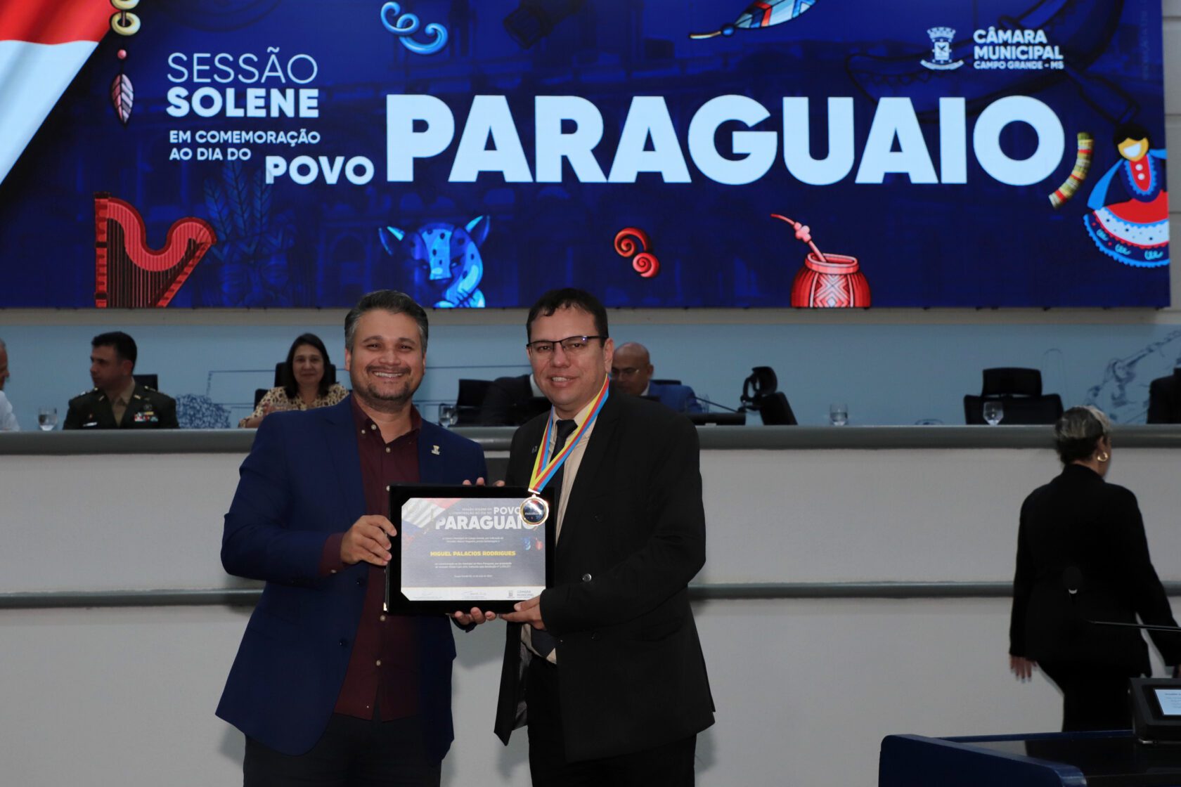 Um dos homenageados foi o fotógrafo e proprietário do site Campo Grande Informe, Miguel Palacios Rodrigues, que recebeu a honraria proposta pelo vereador Maicon Nogueira. “Foi uma honra receber esse reconhecimento, pois serve para nos lembrar do orgulho de ser paraguaio e estar contribuindo para o desenvolvimento de Campo Grande”, disse Miguel Palacios.