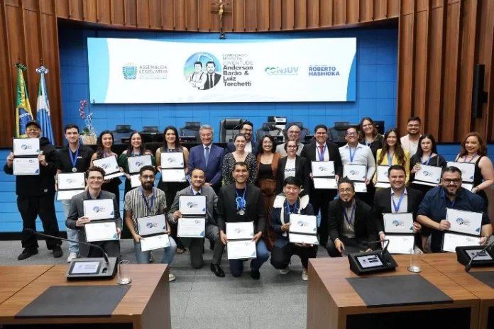As ações positivas voltadas aos jovens sul-mato-grossenses foram celebradas na noite desta terça-feira, 23, durante a Sessão Solene de Outorga da Comenda do Mérito da Juventude “Anderson Barão e Luiz Torchetti” da Assembleia Legislativa. Proposta pelo deputado estadual Roberto Hashioka (União Brasil), a sessão homenageou personalidades que se destacaram pelos bons e relevantes serviços prestados ao fomento, ao planejamento, à estruturação e ao crescimento das políticas públicas em prol da juventude.