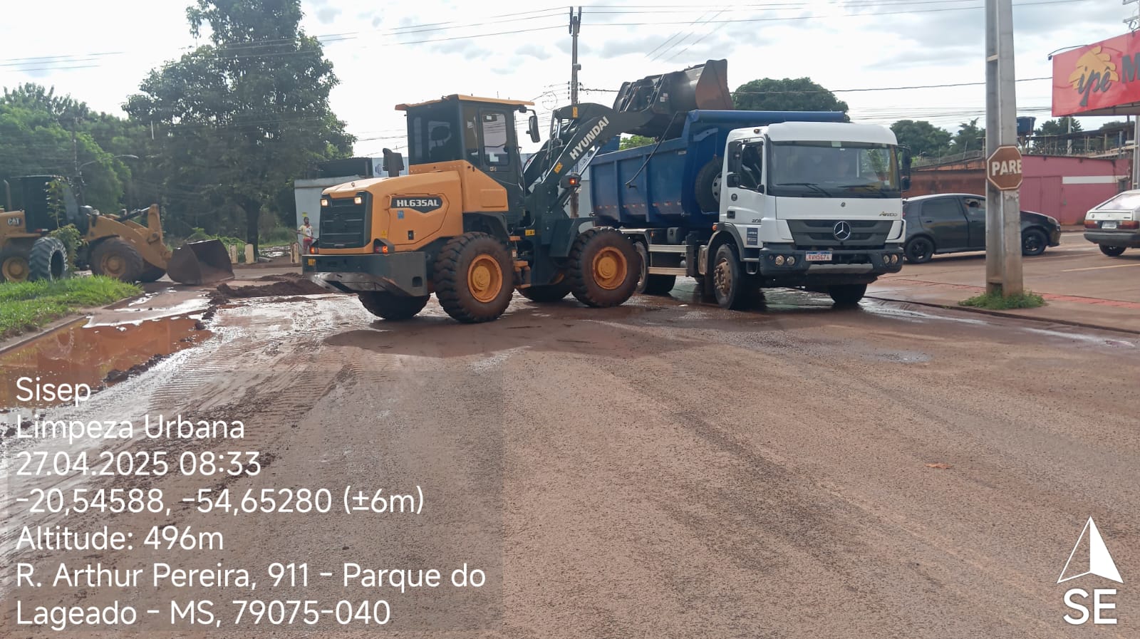 Foi intenso o movimento de máquinas, caminhões e trabalhadores empenhados na retirada de galhos de árvores, lixo e, principalmente, terra e pedras acumuladas na Avenida Guaicurus, no Jardim Centenário e no Parque do Lageado.