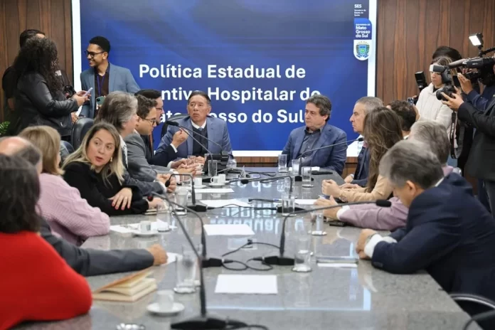 Os deputados estaduais receberam na Assembleia Legislativa de Mato Grosso do Sul (ALEMS) o secretário de Estado de Saúde, Maurício Simões Corrêa, para detalhar sobre o novo modelo de financiamento às unidades de Saúde no estado, com o objetivo de incentivar com bonificação financeira os diagnósticos, procedimentos e cirurgias e, consequentemente, ampliar o número de atendimentos de forma a tentar sanar as atuais filas.