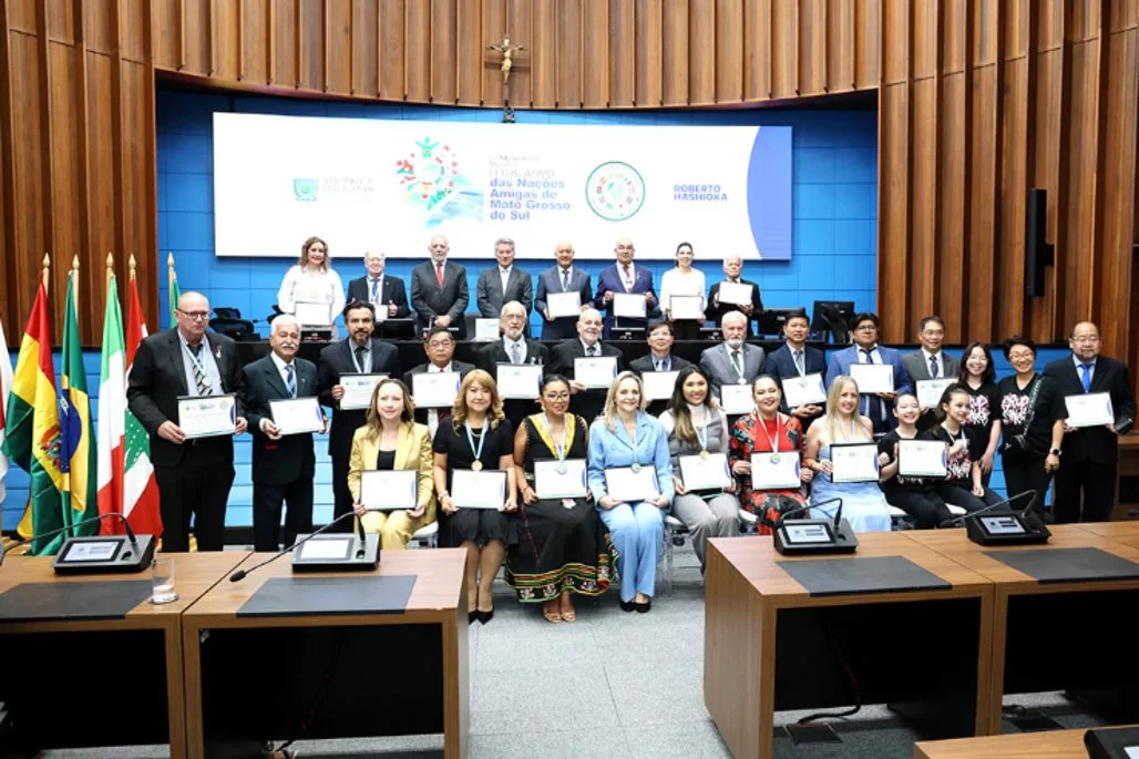 Presidida pelo deputado estadual Roberto Hashioka (União Brasil), a Sessão Solene de Outorga da Comenda do Mérito Legislativo das Nações Amigas de Mato Grosso do Sul foi realizada na Assembleia Legislativa na noite desta quarta-feira, 8, e homenageou 29 pessoas e entidades.