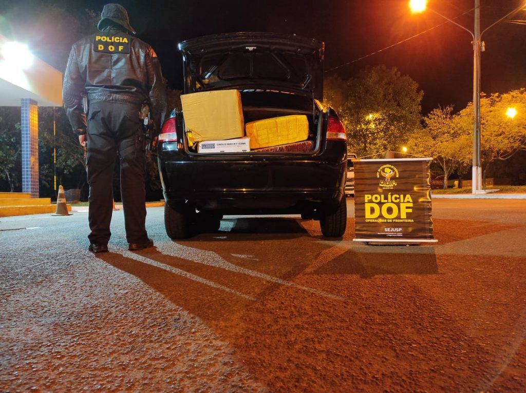 oliciais do Departamento de Operações de Fronteira (DOF) prenderam, na madrugada desta segunda-feira, um homem de 37 anos de idade foragido da Justiça que conduzia um veículo Corsa Classic de cor preta, placas de Ampére (PR) e carregado com 287,9 quilos de maconha, mais 15,9 quilos de skank.