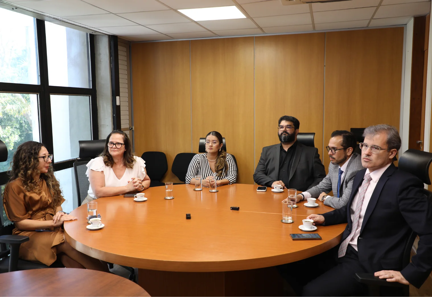 Também participaram da reunião a gestora negocial do eproc no Tribunal, Deborah Mussi Salomão; o presidente da Comissão Especial de Acompanhamento dos Juizados Especiais (CEAJE), Luiz Fernando Espíndola Bino; a presidente da Comissão de Inovação e Tecnologia Jurídica (CITJ), Leide Thaiana Dias da Silva; e o presidente da Comissão de Direito Digital e Startups (CDDS), Raphael Sérgio Rios Chaia Jacob.