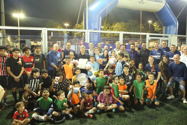 Na noite desta terça-feira, o deputado estadual Lidio Lopes participou da cerimônia de inauguração da nova Arena Esportiva do Bairro Cophatrabalho, em Campo Grande. Durante o evento, o parlamentar entregou oficialmente uma emenda parlamentar que viabilizou a aquisição de materiais esportivos destinados às aulas promovidas pela Fundação Municipal de Esporte (Funesp).