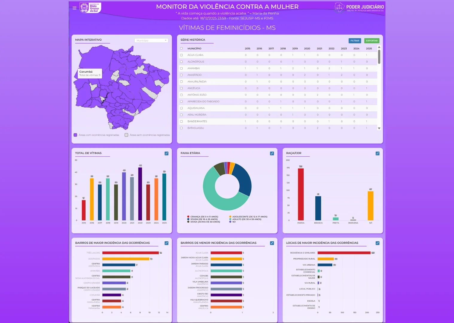 O Tribunal de Justiça de Mato Grosso do Sul (TJMS) implementou, ao longo do mês de dezembro de 2025, uma série de melhorias no Monitor da Violência Contra a Mulher, ferramenta estratégica voltada ao acompanhamento e à análise de dados sobre violência de gênero no Estado. As atualizações ampliam a transparência, a precisão das informações e o potencial de uso do painel por gestores, magistrados e equipes técnicas.