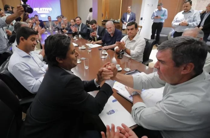 Além do prefeito, participaram também vereadores e representantes da bancada parlamentar estadual e federal. “A gente tem que olhar o Estado como um todo, e observar em Bandeirantes o que aconteceu, em termos de crescimento, com os investimentos do MS Ativo 1 e agora o MS Ativo 2, ajuda a transformar a cidade”, afirmou Riedel.