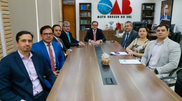 A viabilização do projeto foi discutida pelo Presidente da OAB/MS, Bitto Pereira, em reunião técnica realizada na sede da instituição. Participaram do encontro o Secretário-Geral e Corregedor-Geral, Luiz Renê Gonçalves do Amaral; o Presidente da Comissão de Precatórios, Cleyton Baeve de Souza; o Conselheiro Estadual e Vice-Coordenador das Comissões, Bruno Taveira; e o Presidente da Comissão de Leilões, Hélio de Oliveira Neto. Representando o Poder Judiciário, estiveram presentes o juiz diretor da Central de Processamento Eletrônico (CPE), Wilson Leite Corrêa; a diretora da Secretaria Judiciária de 1º Grau, Silvana Martins Silva de Carvalho; e o diretor do Departamento Cível da CPE, Guilherme Zafalao Peixoto Leandro.