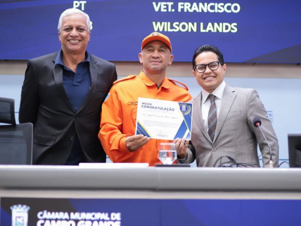 Incentivador dos esportes, o presidente da Câmara Municipal de Campo Grande, vereador Epaminondas Vicente Neto, o Papy, entregou nesta quinta-feira (10) Moção de Congratulação ao 1° Sargento do Corpo de Bombeiros de Mato Grosso do Sul, Paulo Cézar da Silva Aquino, pelo Projeto Fênix Vôlei Adaptado Melhor Idade.
