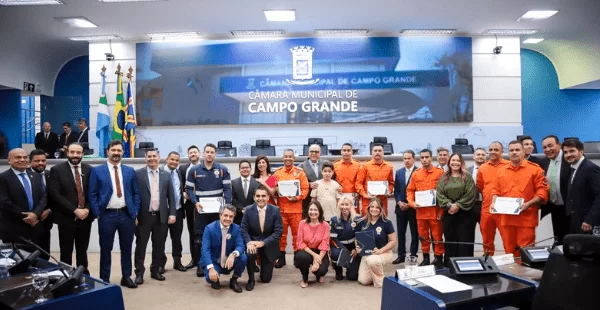 Homens e mulheres dedicados a salvar vidas, podem ser chamados de heróis. Reconhecendo esse empenho e o árduo trabalho que o presidente da Câmara Municipal de Campo Grande, vereador Epaminondas Vicente Neto, o Papy, entregou Moção de Congratulação aos militares do Corpo de Bombeiros e socorristas do SAMU (Serviço de Atendimento Móvel de Urgência).