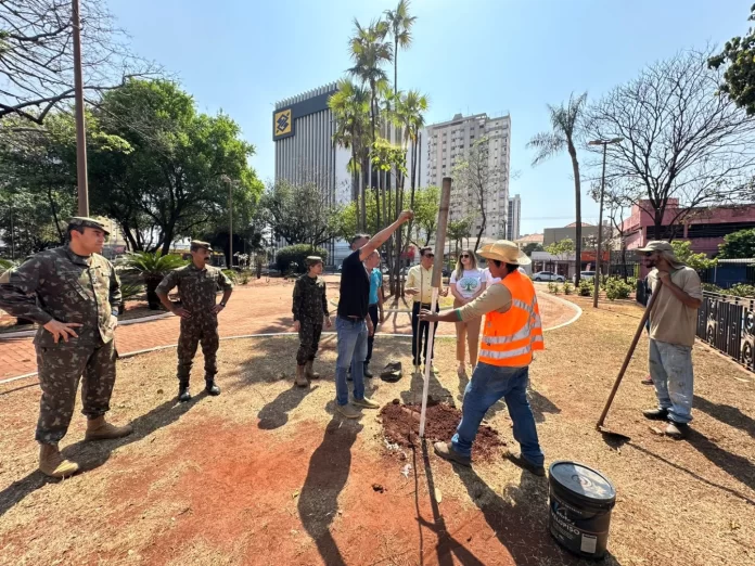 O plantio contou com a presença de representantes do Exército Brasileiro e da concessionária Águas de Guariroba.