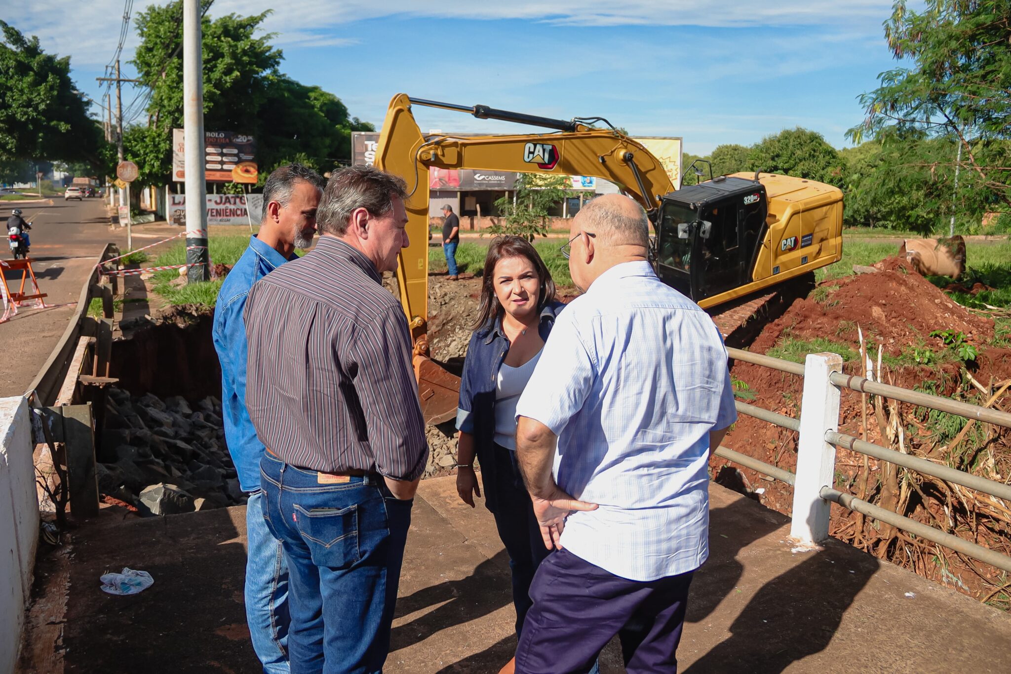 No local, uma das erosões ocorreu ao lado da ponte, afetando inclusive parte da calçada. A outra foi registrada na Avenida Georges Chaia, no sentido Oeste-Leste, antes do cruzamento com a Rua da Divisão. A Secretaria Municipal de Infraestrutura e Serviços Públicos (Sisep) está utilizando pedras para reforçar o aterro e garantir a estabilidade da estrutura – procedimento semelhante ao adotado na recomposição da Avenida Filinto Muller, em frente ao Lago do Amor, após o temporal de março deste ano.