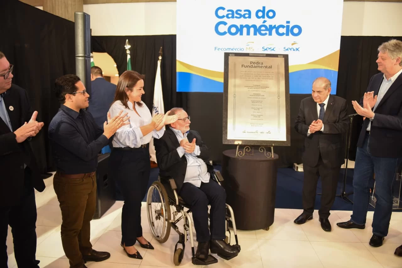 Ainda no período da tarde, foi lançada a pedra fundamental da nova sede do Sistema Comércio MS, que reunirá os serviços da Fecomércio, Sesc e Senac em um edifício de nove pavimentos no Centro da Capital. O projeto prevê auditórios, salas de reunião, coworking, Restaurante Escola e espaços modernos com conceitos de sustentabilidade e acessibilidade. As obras devem começar em agosto de 2025, com prazo de conclusão de até 18 meses.