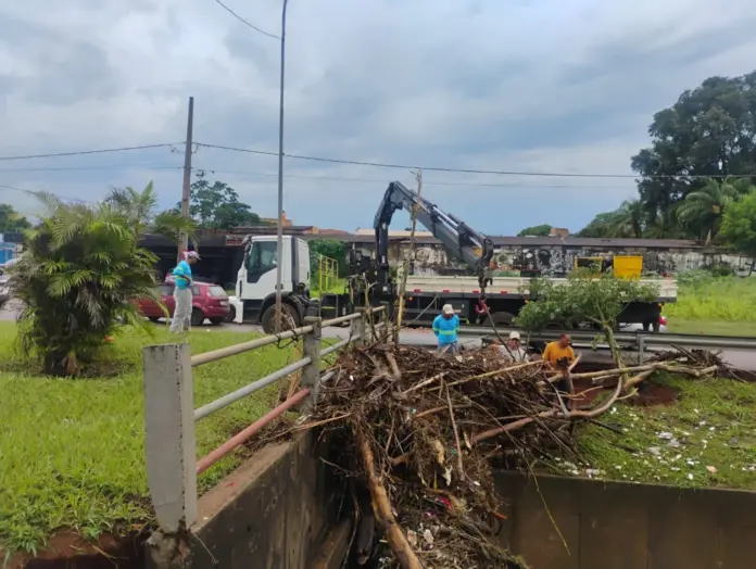 Na região da Avenida Euler de Azevedo, as equipes da Sisep realizaram a limpeza do canal do córrego Segredo, com a retirada de galhos e troncos presos à ponte. Já na rotatória da Avenida Rachid Neder, foi feita a limpeza mecanizada, com a remoção de terra, pedras e resíduos levados pela enxurrada.