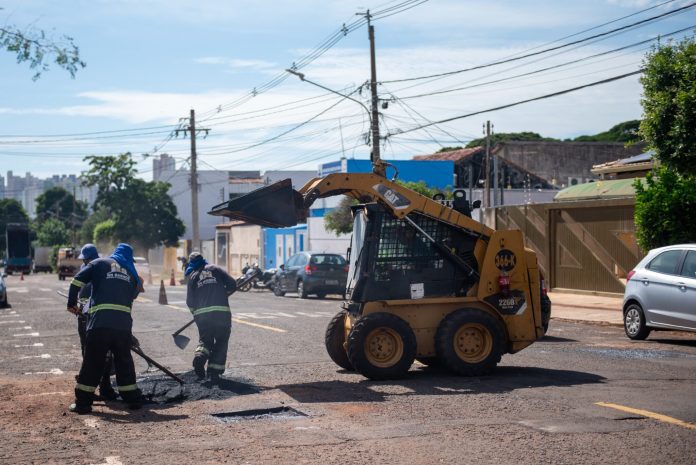 A cada dia de sol forte, o ritmo dos trabalhos das equipes de tapa-buracos se intensifica tanto nos bairros quanto na região central de Campo Grande. Para atingir a meta diária de tampar entre 1.500 e 2.000 buracos, as atividades começam cedo, por volta das 6h, inclusive aos sábados e feriados. Nesta segunda-feira (5), as equipes da Prefeitura por meio da Secretaria Municipal de Infraestrutura e Serviços Públicos (Sisep) passam por várias vias da cidade.