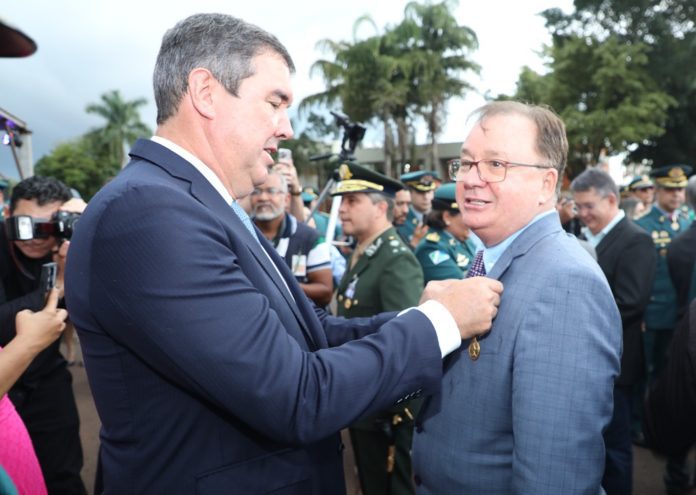 A solenidade de outorga da condecoração foi realizada no Quartel do Comando-Geral da Polícia Militar de MS, em Campo Grande. O desembargador recebeu a medalha das mãos do governador do Estado, Eduardo Riedel, e foi reverenciado pelo comandante-geral da Polícia Militar, coronel Renato dos Anjos Garnes.