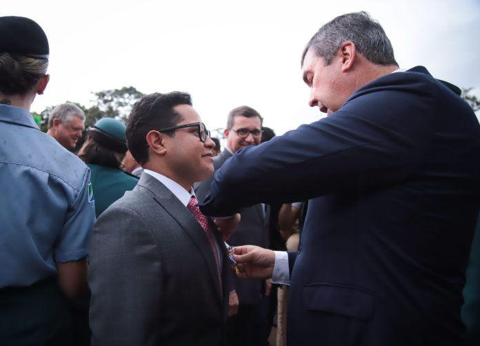 O vereador Epaminondas Neto, o Papy, presidente da Câmara Municipal de Campo Grande, foi homenageado nesta quinta-feira (24) com a Medalha Tiradentes, honraria concedida pela Polícia Militar de Mato Grosso do Sul. A tradicional cerimônia reconhece a atuação de representantes da sociedade civil que contribuem para o fortalecimento da Polícia Militar.