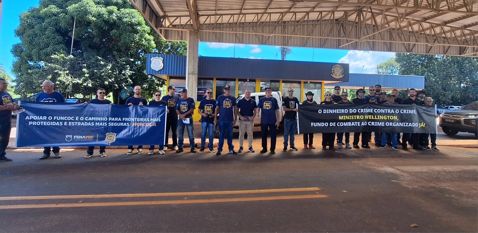 Policiais Rodoviários Federais e Policiais Penais Federais realizaram, nesta sexta-feira (27), uma mobilização na BR-262, em Mato Grosso do Sul, em defesa da criação do Fundo Nacional de Combate ao Crime Organizado (Funcoc). O ato aconteceu na Unidade Operacional da PRF em Terenos/MS, no km 385 da rodovia, e foi promovido pelo Sindicato dos Policiais Rodoviários Federais de Mato Grosso do Sul (SINPRF-MS) e pelo Sindicato dos Policiais Penais Federais em MS (SINPPF/MS).