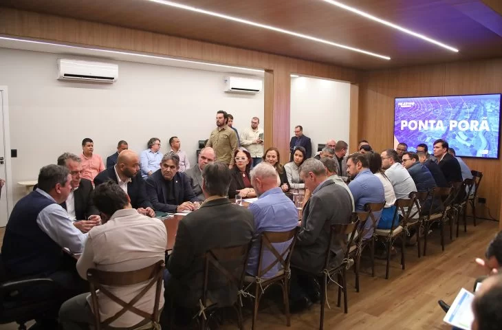 A reunião contou com a presença do secretário Guilherme Alcântara (Seilog), dos deputados federais Geraldo Resende e Dagoberto Nogueira, Beto Pereira, e dos parlamentares estaduais Mara Caseiro, Márcio Fernandes, Lucas de Lima, Zé Teixeira e Pedrossian Neto.