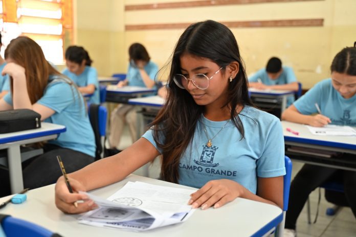 A chefe do Centro Municipal de Avaliação da Reme da Capital, Karine Alcantara, ressalta que o simulado ofertado pela Secretaria de Educação Municipal de Campo Grande prepara os alunos para qualquer tipo de avaliação externa, como o Enem e o Saeb. “Somos extremamente privilegiados porque temos uma prova que simplesmente prepara nossos alunos para qualquer tipo de avaliação externa”, destacou. Karine também enfatizou a importância do simulado ofertado pela Reme para a melhoria do ensino. “A avaliação, em formato de simulado, tem o objetivo de aumentar o nosso IDEB. Somente através da avaliação e desse estudo é que conseguimos ter um diagnóstico, obter dados para atingir o objetivo de ter mais recursos e, claro, melhorar a questão do ensino-aprendizagem”, afirmou.