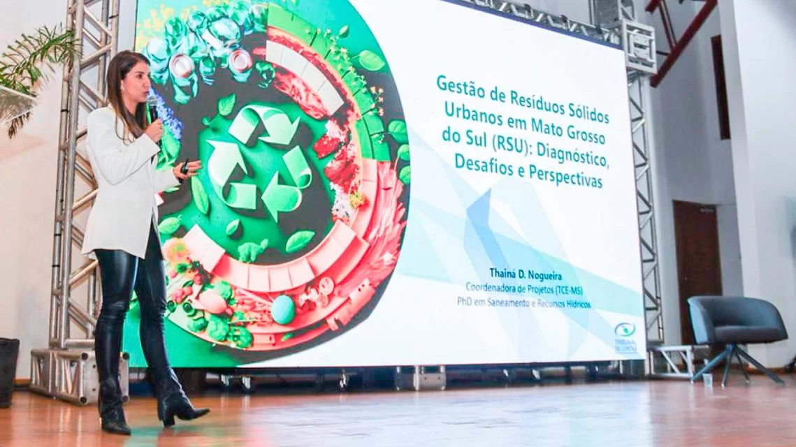 Durante sua participação, a servidora do TCE-MS, Thainá Nogueira, apresentou dados importantes sobre a destinação correta dos resíduos sólidos em Mato Grosso do Sul. Ela destacou que, atualmente, mais de 90% dos municípios destinam seus resíduos de forma adequada, em aterros sanitários com isolamento ambiental, um avanço significativo em relação ao passado, quando lixões eram comuns e causavam sérios impactos ambientais.