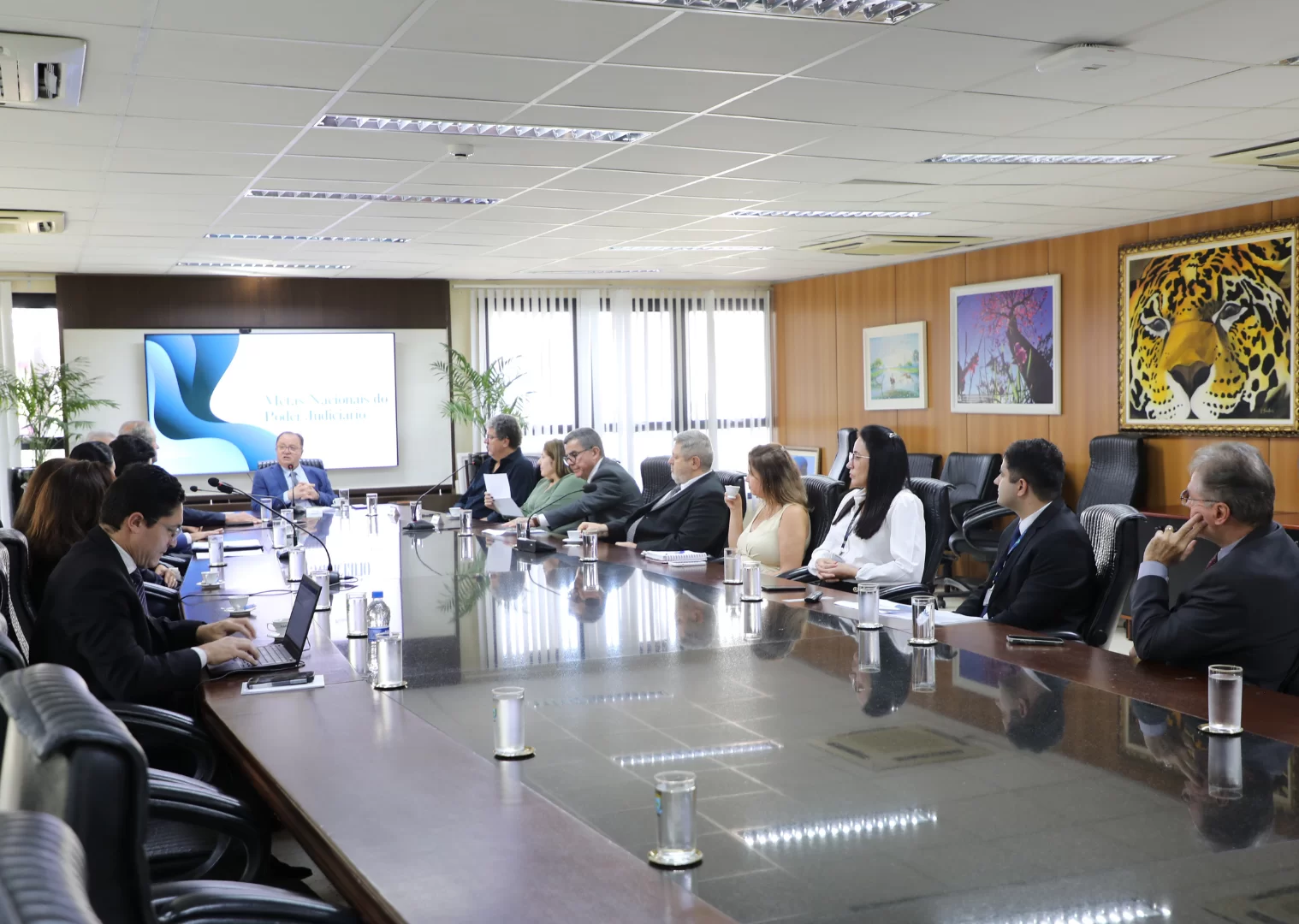Na tarde desta segunda-feira, dia 16 de junho, o Tribunal de Justiça de Mato Grosso do Sul promoveu, no Salão Pantanal do TJMS, a reunião de apresentação das propostas de Metas Nacionais do Poder Judiciário para o ano de 2026. O encontro, conduzido pela Presidência por meio da Assessoria de Planejamento, faz parte do processo participativo das metas nacionais, instituído pelo Conselho Nacional de Justiça (CNJ) para garantir maior transparência, representatividade e comprometimento na formulação das estratégias do Judiciário.