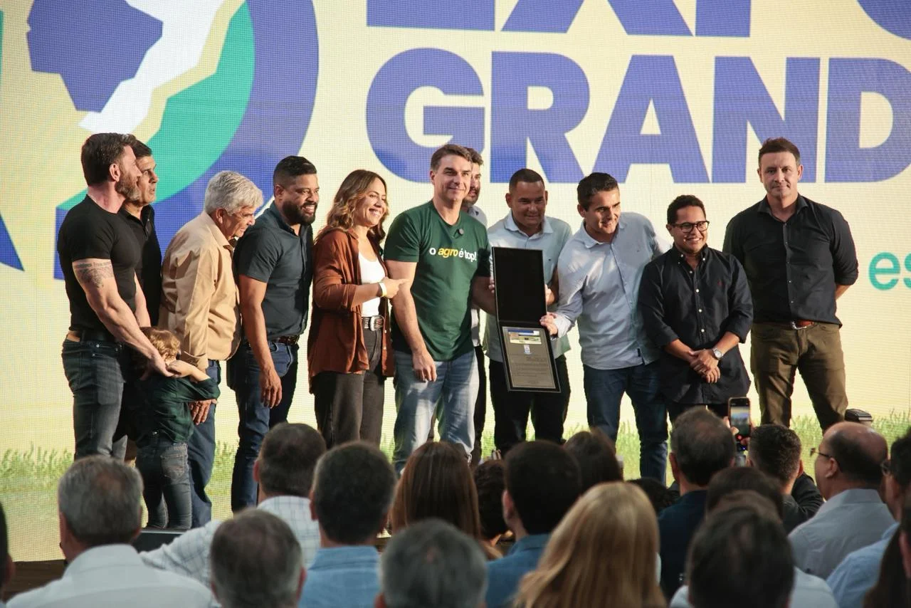 A 86ª Expogrande 2026 começou nesta quinta-feira (9), no Parque de Exposições Laucídio Coelho, com a participação do senador Flávio Bolsonaro (PL-RJ). O presidente da Câmara de Campo Grande, vereador Epaminondas Vicente Neto, o Papy, e outros vereadores homenagearam o convidado com Título de “Visitante Ilustre” da cidade de Campo Grande.